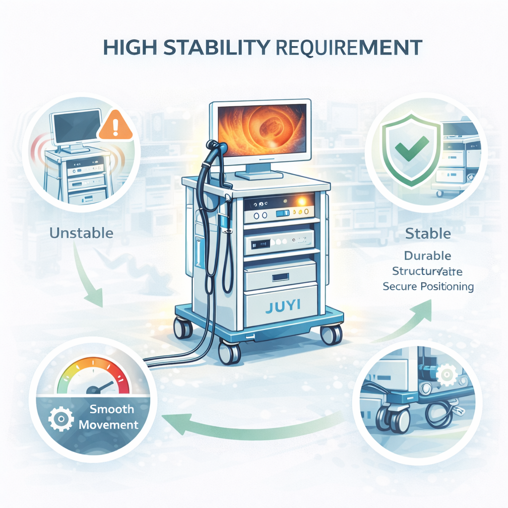 Unstable monitor positioning can lead to poor viewing angles or slight shifts during operation. In high-frequency procedures, even minor instability can impact performance and user confidence.