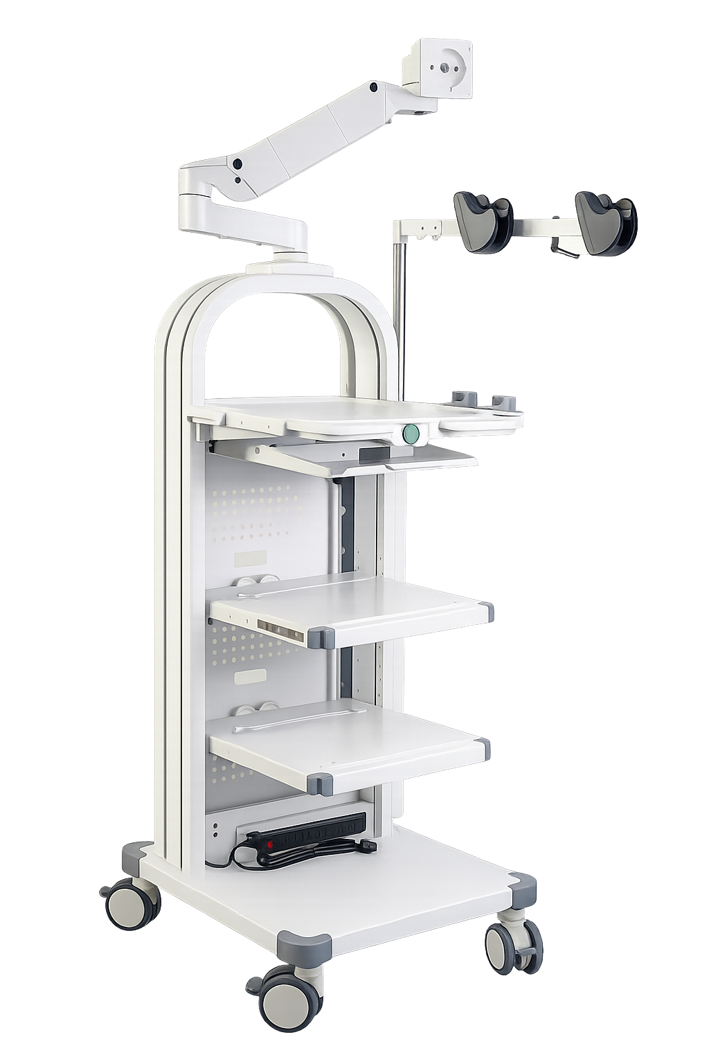 It supports equipment such as monitors, processors, and light sources, allowing multiple devices to be organized on a single platform.